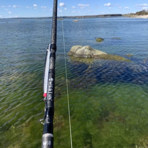 I dag bruger jeg en Westin W8, 9 fod (7–30 g). Den passer perfekt til min lidt aggressive kastestil og kroger fiskene godt.