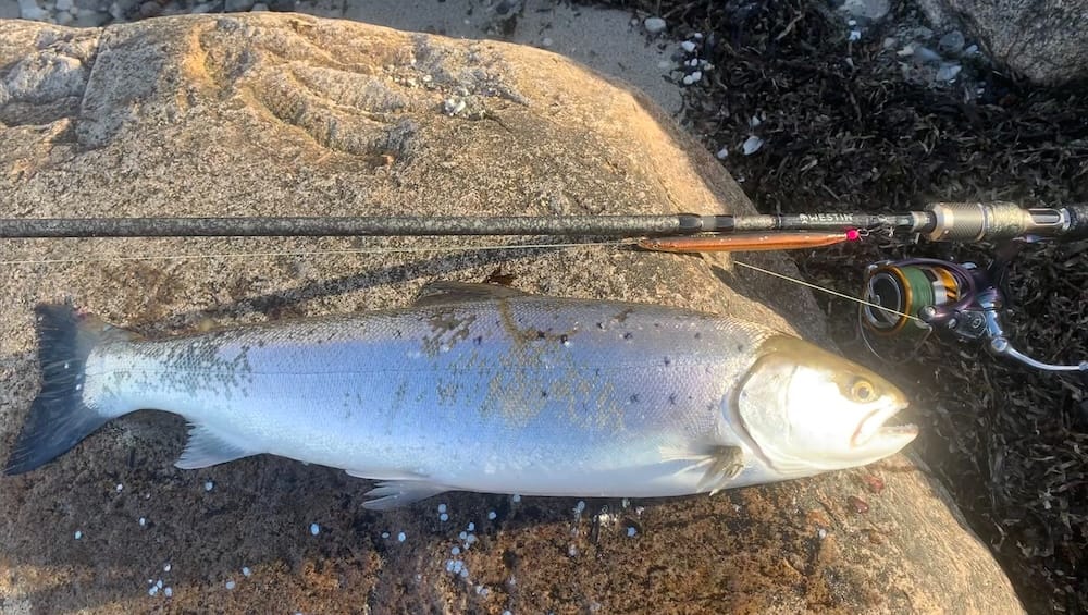 Til efterårsfiskeri bruger jeg samme grej som resten af året – typisk en spinnestang på 8–9 fod, og gennemløbsblink på 18–22 g.